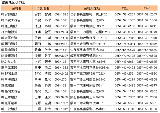正会員令和7年8月7日現在【雲南地区】